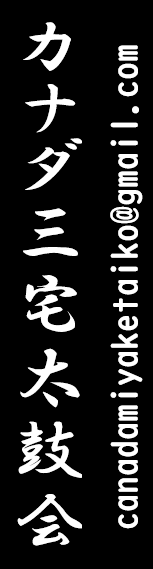 ❷ Canada Miyake Taiko Kai is one of the official international branches (USA, Singapore, Australia, New Zealand, Canada, Hong Kong) of Miyake Jima Geinou Doushi Kai, Japan.