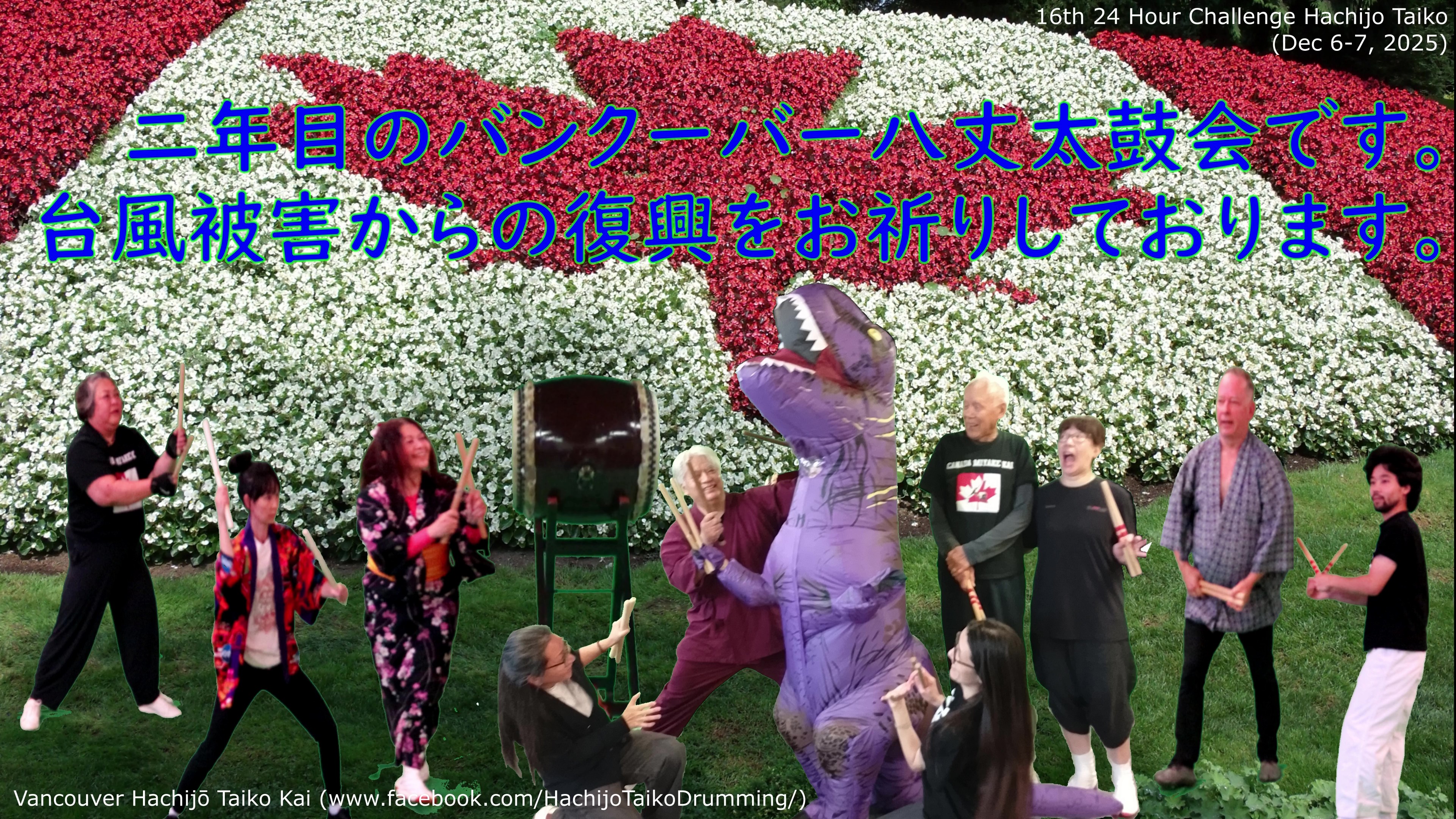 Vancouver Hachijo Taiko Kai is a group established by Noriko Kobayashi (NoriNori) in 2024 for the taiko drummers enjoying Hachijo Taiko (the traditional drumming style from Hachijo Island, Japan) around Vancouver, Canada.